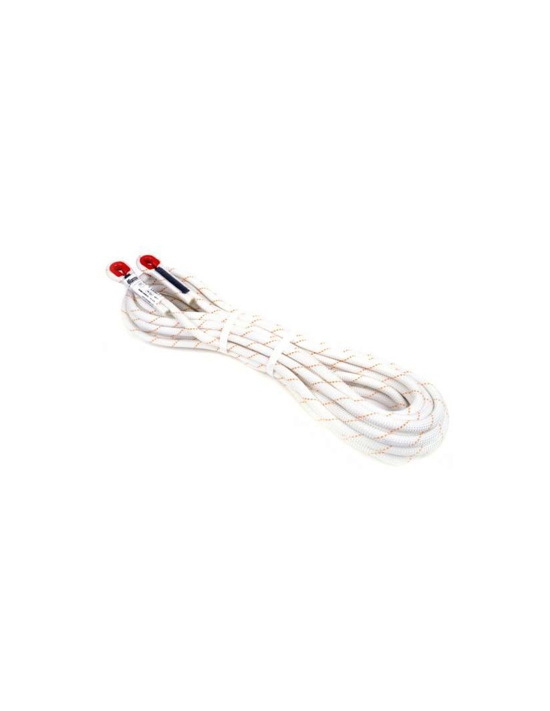 Cuerda semiestática con cablo de anclaje cosido en cada extremo.