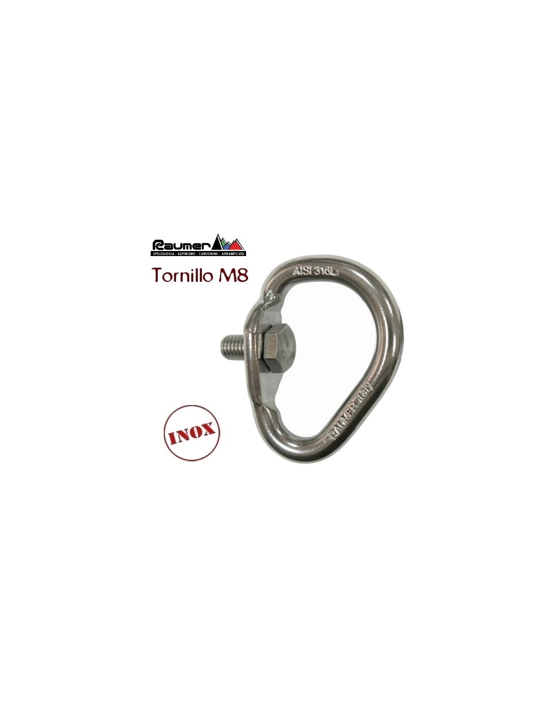 Anillo inoxidable en AISI 316L con tornillo inox M8 imperdible para espeleología
