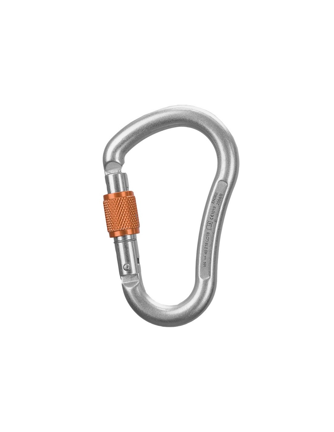 Mosquetón HMS de acero con cierre de rosca.