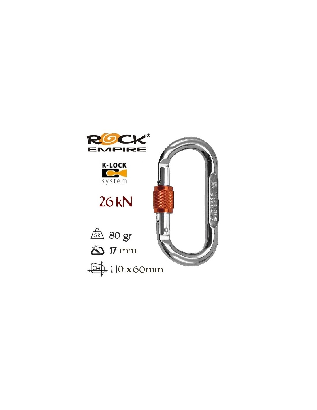 El Óvalo simétrico de Rock Empire es un mosquetón de seguridad del tipo oval con cierre tipo rosca. Se trata de un mosquetón polivalente, de buen tamaño, resistente y de gran apertura.