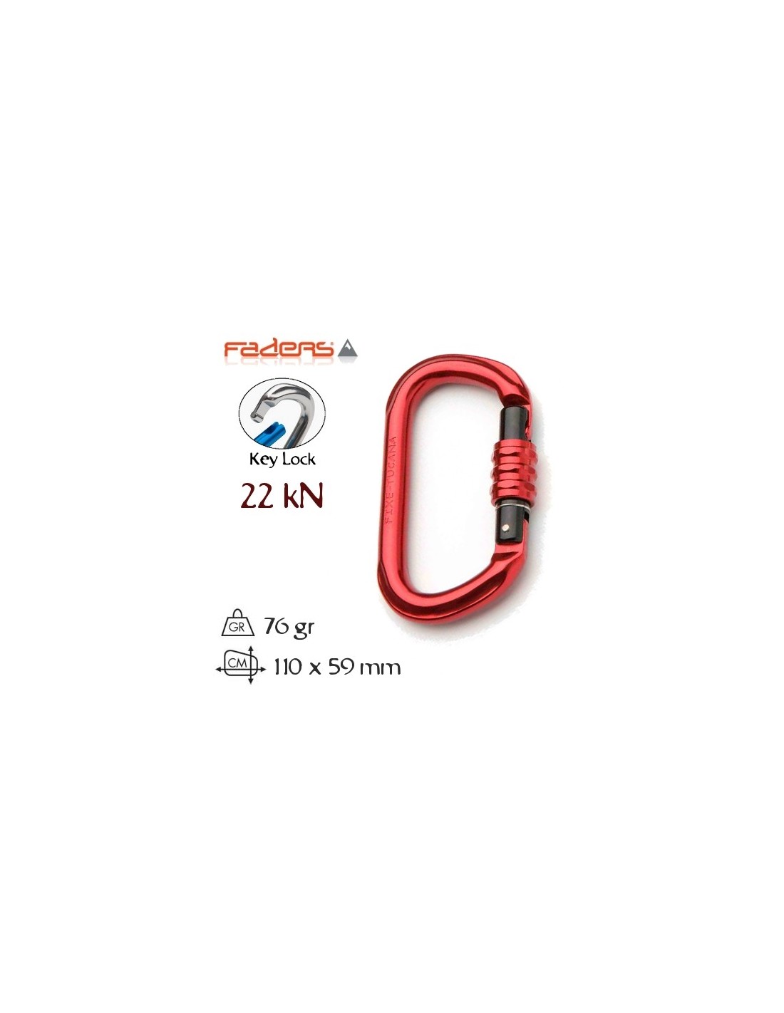 Diseñado para industria, espeleo y trabajos verticales. Mosquetón totalmente simétrico, de forma ovalada y con cierre de seguridad en rosca. La rosca tiene forma hexagonal para poder desatascarla con una llave.