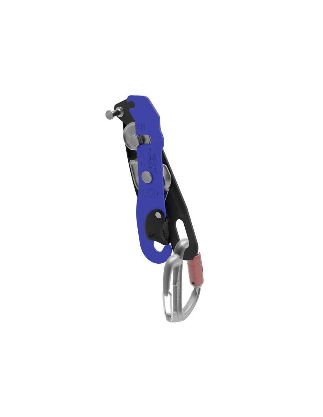 - Gatillo de cierre en la placa lateral que se puede abrir para instalar la cuerda fácilmente y mantener a la vez el aparato conectado al arnés.