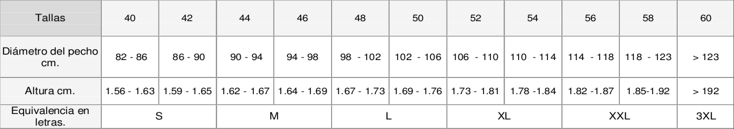 Prestad especial atención al diametro del pecho. Es un dato importante.