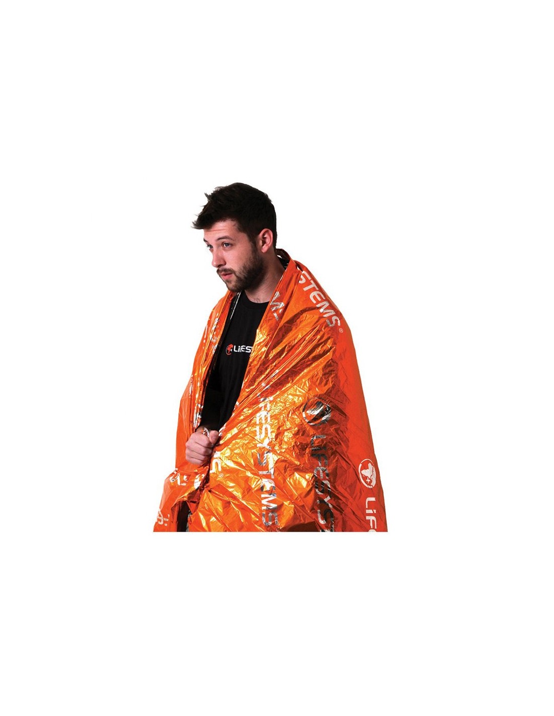 Una manta térmica compacta y liviana que, cuando se envuelve alrededor del cuerpo, refleja y retiene más del 90% del calor corporal irradiado en caso de accidente o trauma, o cuando el clima se vuelve frío repentinamente.