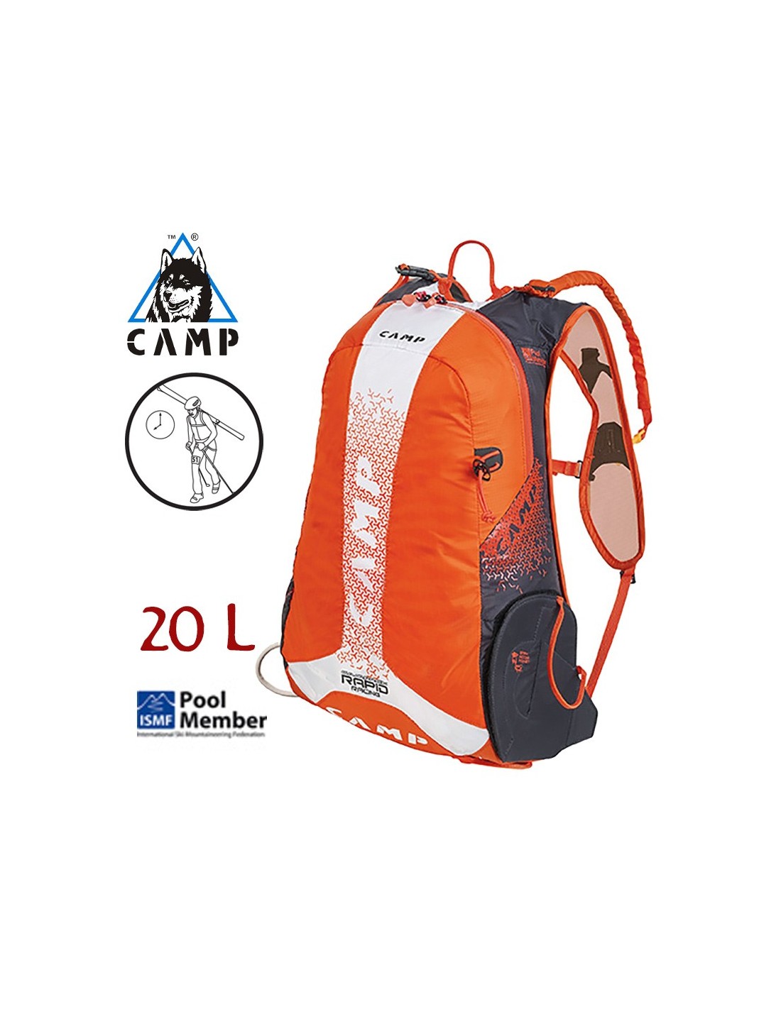 MOCHILA RAPID RACING 20L (WHITE/ORANGE) - CAMP