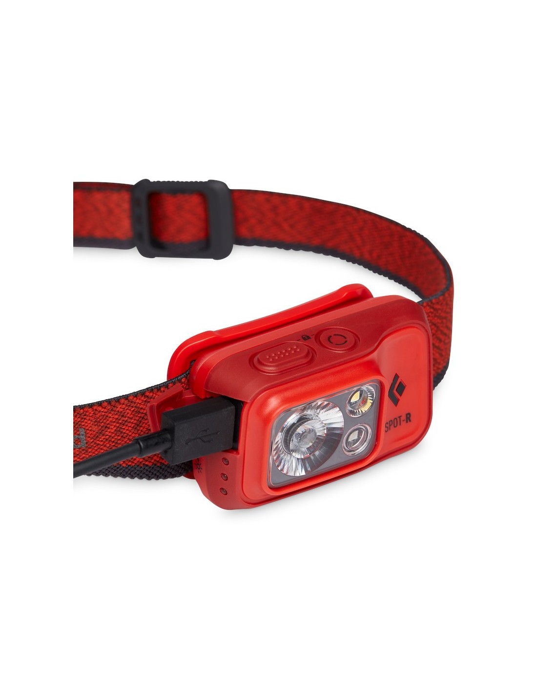 El Spot R es un frontal de bateria recargable, con impermeabilidad IP67 y con una potencia maxima de 400 lumenes.
