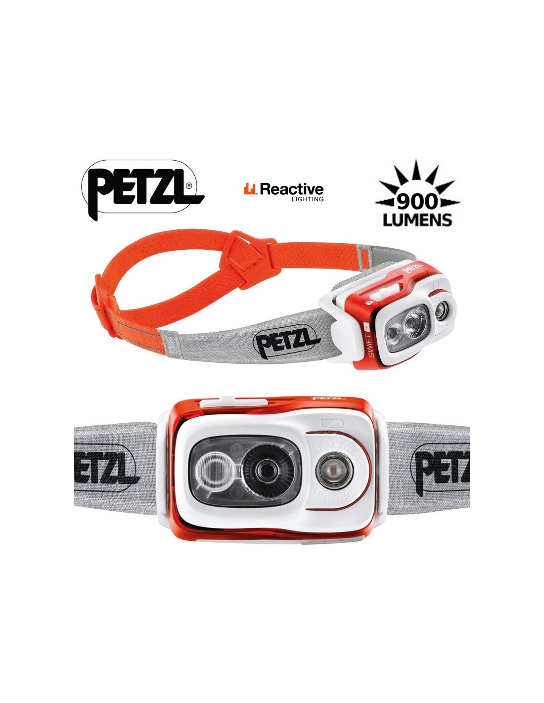 Linterna frontal compacta, ultrapotente y recargable, provista de la tecnología REACTIVE LIGHTING. 900 lúmenes