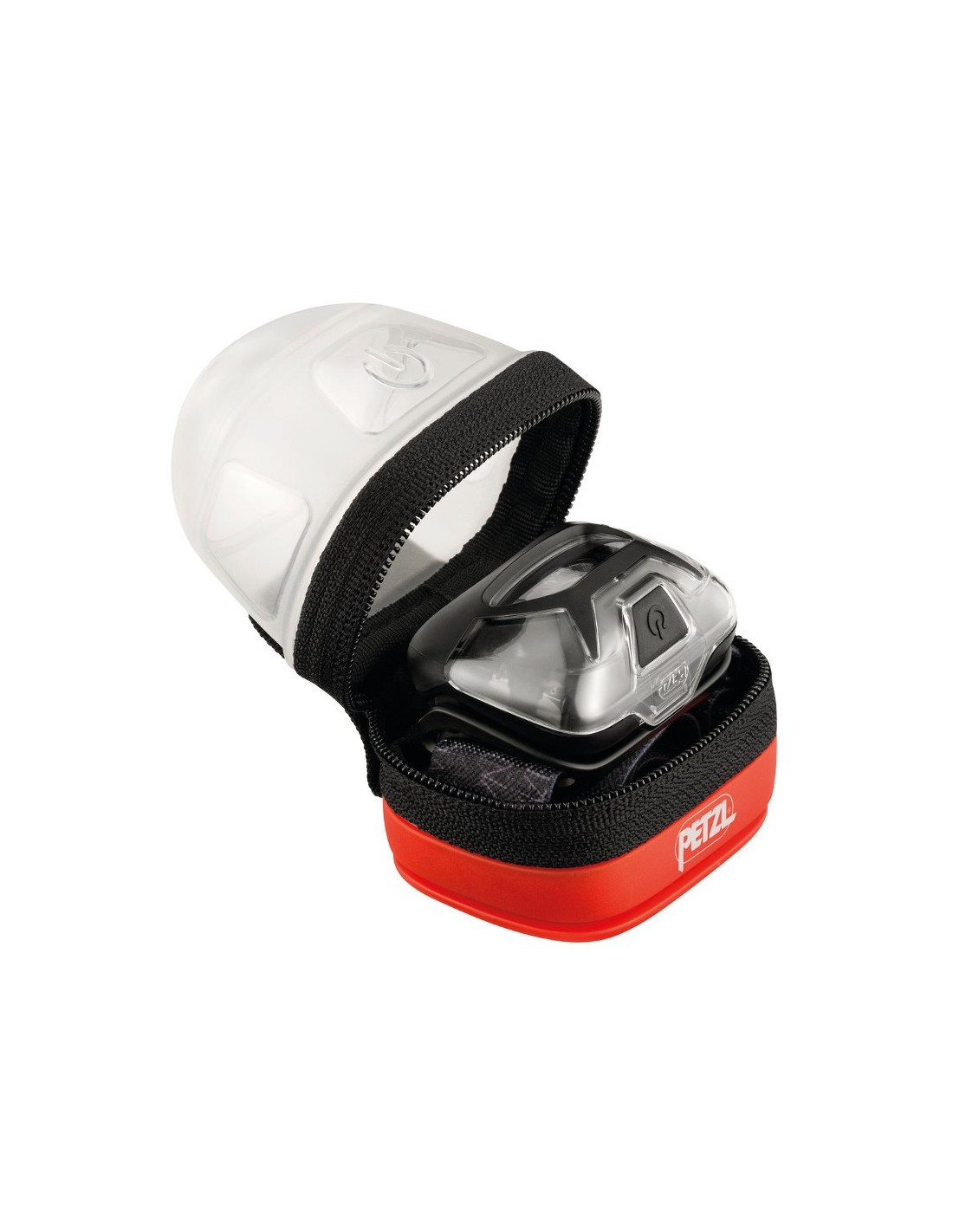 Estuche protector y de transporte para linternas frontales compactas Petzl que permiten la difusión de la luz en modo farol