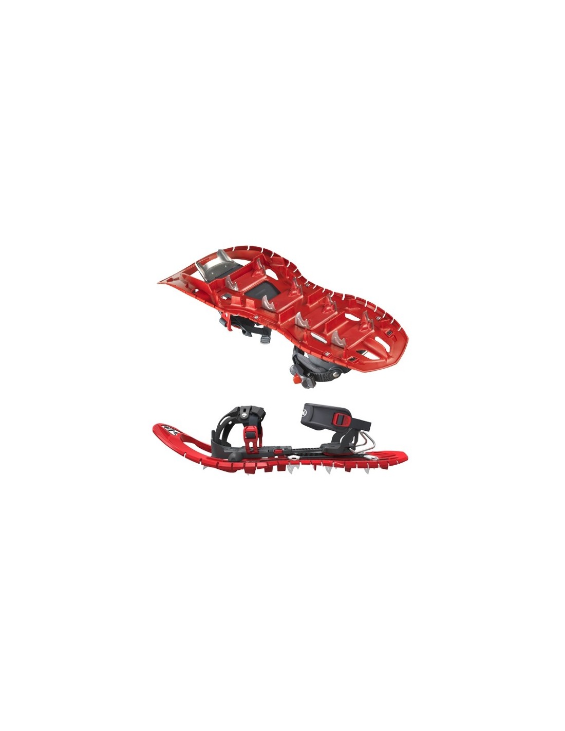 Nunca una raqueta de nieve ha procurado un enganche tan impresionante. Asociados a las lamas verticales, los crampones bidireccionales de acero inoxidable situados bajo los pies, permiten una tracción óptima en el ascenso, una excelente retención en el descenso y una perfecta adherencia en inclinación lateral. Adaptándose a la forma del terreno, la flexibilidad del chasis asegura una extraordinaria sujeción, una completa seguridad y evita el deslizamiento intempestivo sobre la nieve en polvo.