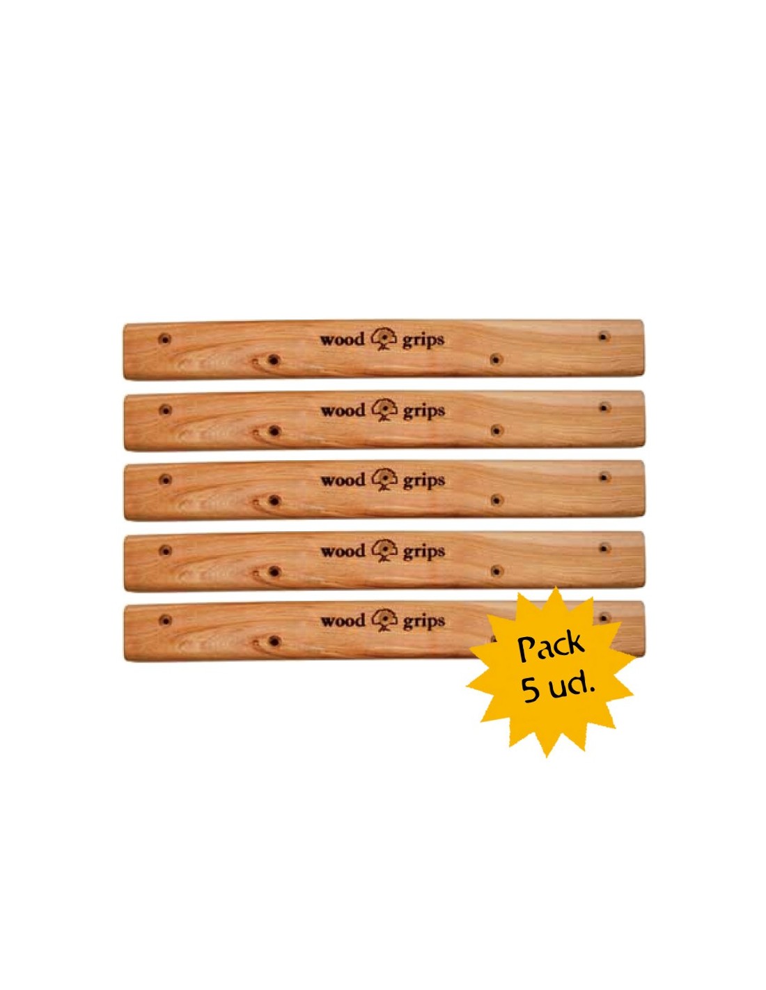 Juego de 5 listones campus en madera de grueso L (32mm), con insuperable sensación y consistencia, ideales para montarte tu propio espacio de entrenamiento en tu casa.