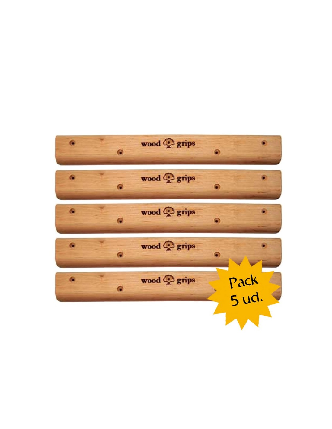 Juego de 5 listones campus en madera de grueso XL (34,9 mm), con insuperable sensación y consistencia, ideales para montarte tu propio espacio de entrenamiento en tu casa.