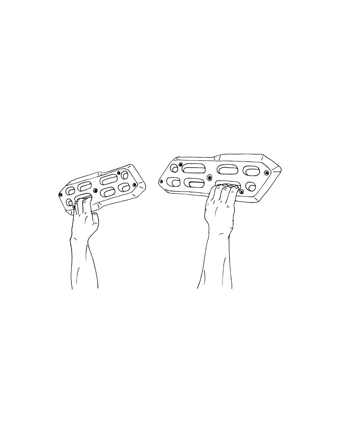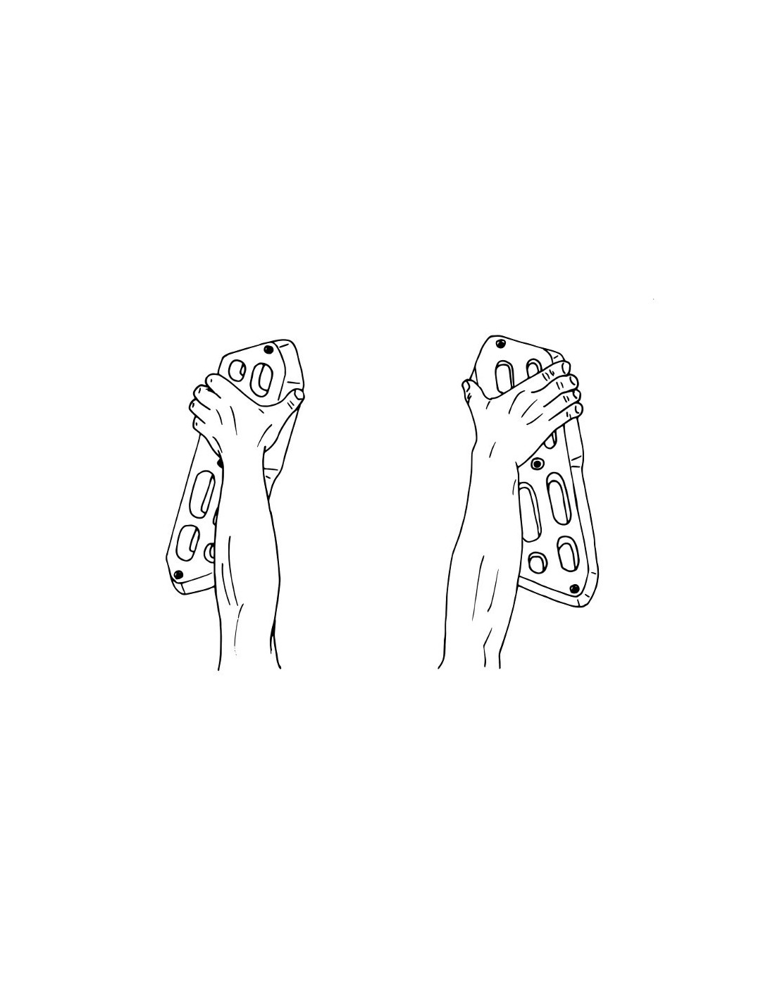- Girar las tablas a 90° para entrenar los músculos frontales de los brazos y las pinzas.