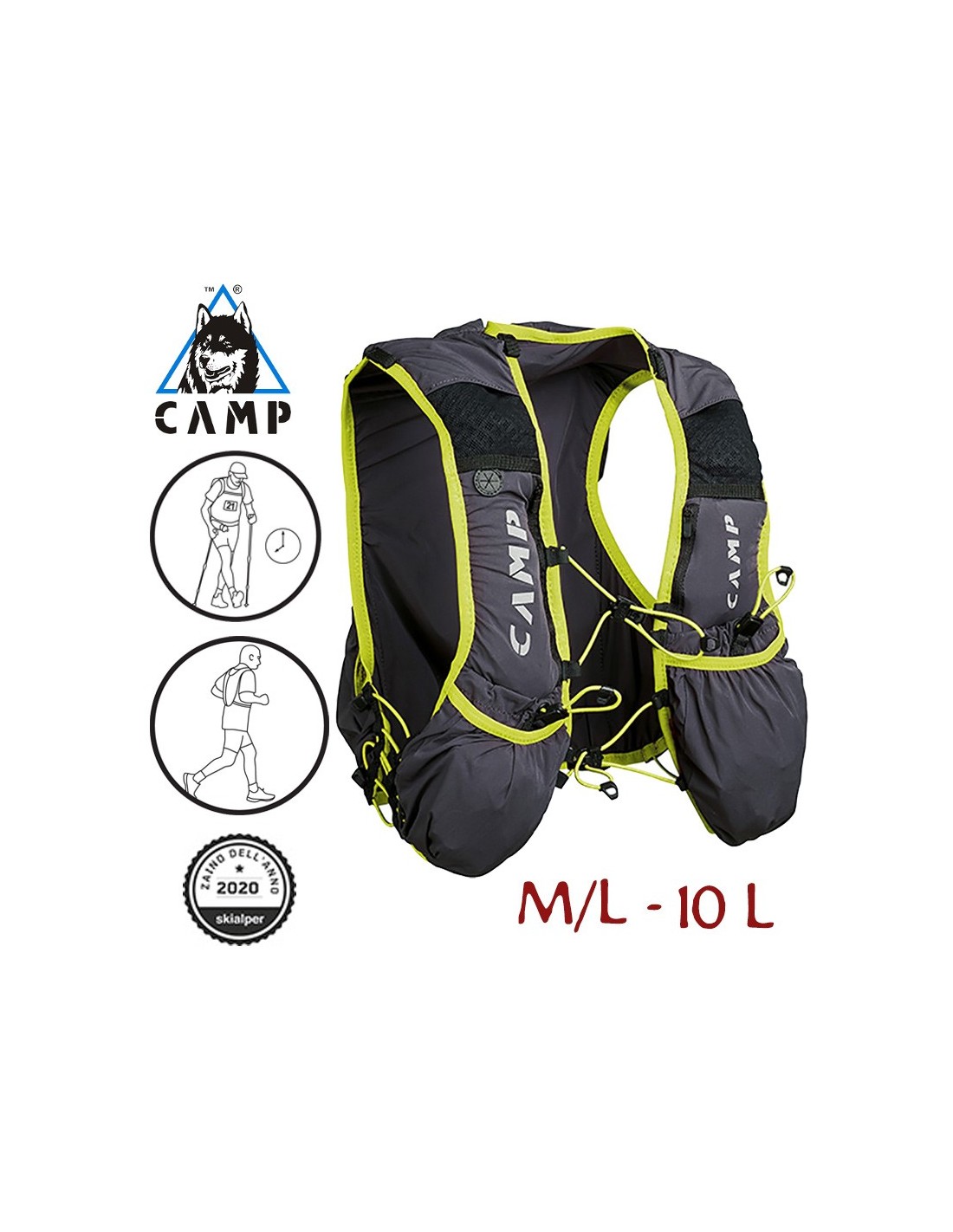 MOCHILA TRAIL FORCE 10L (M-L ANTHRACITE GREY/LIME) - CAMP