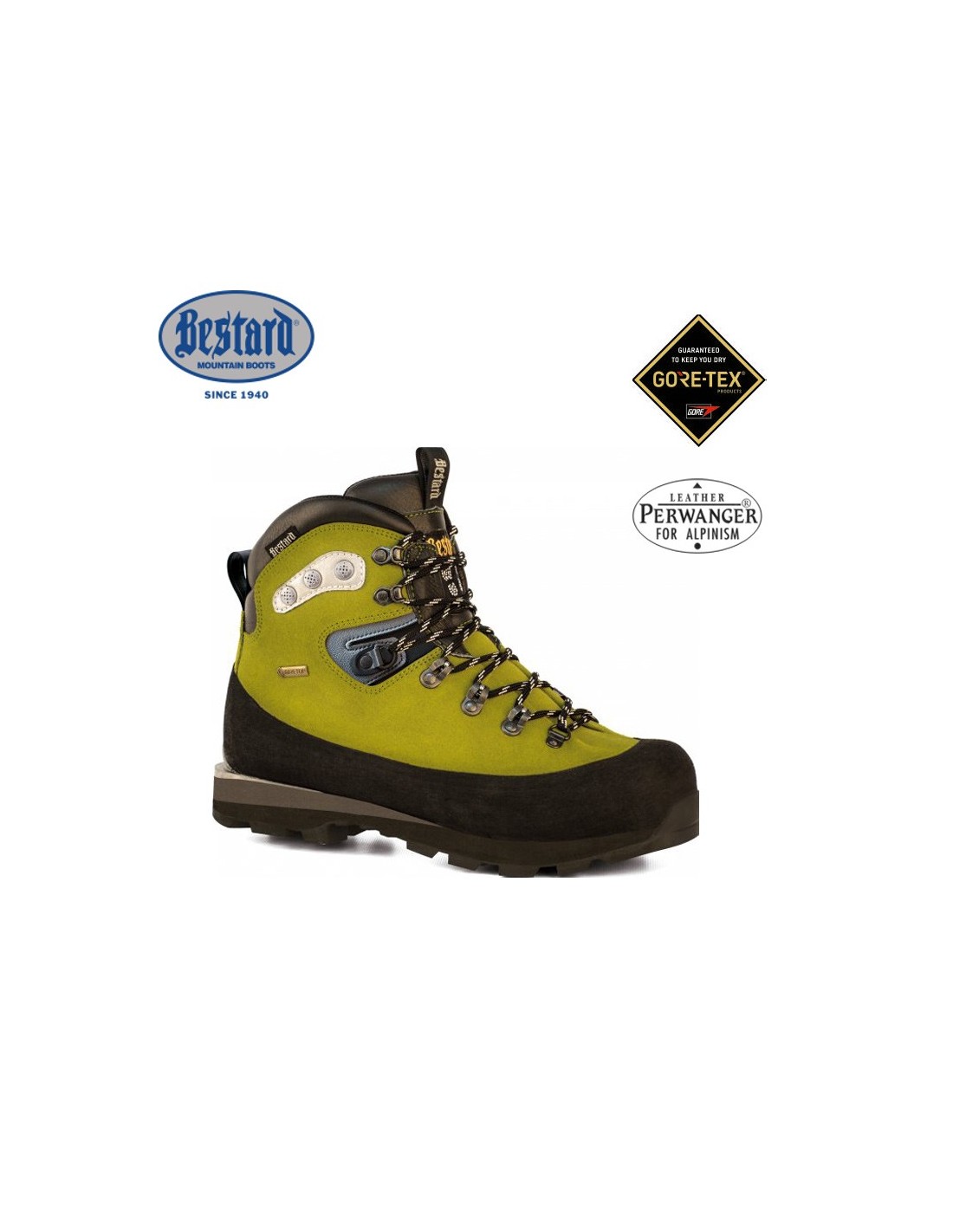 - Materiales: Parte superior: Piel Perwanger 2,6mm Hidrófuga/Caucho. Forro: Gore-tex Performance Comfort.
