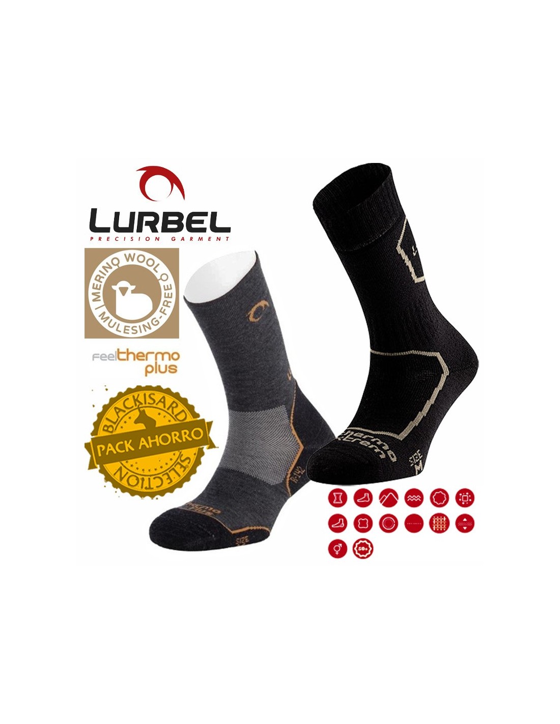 - Feel Thermo Plus que añade calidad térmica a las prendas, por lo que estos calcetines son adecuados para los deportes con bajas temperaturas, bajo la sudoración o región fría. Integran un tejido inteligente capaz de retener la temperatura, mantener el calor corporal y expulsar el sudor y la humedad al exterior.