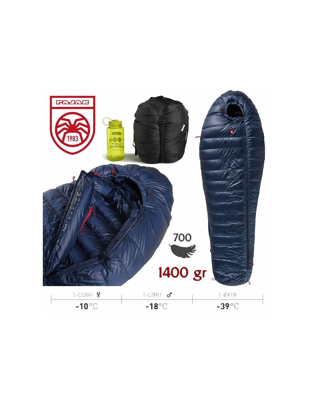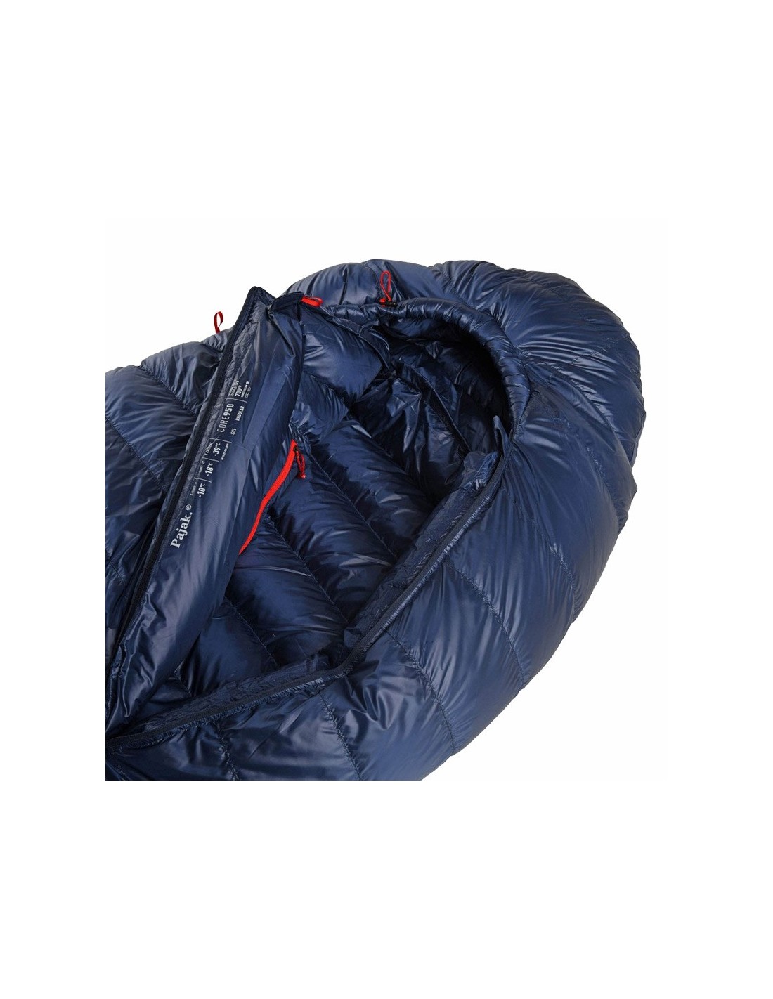 Saco de dormir con relleno de plumas diseñado para expediciones invernales. Su impresionante temperatura extrema de -39 [C] EN13537 lo mantendrá caliente en las condiciones más hostiles. Un elemento imprescindible para sus expediciones.