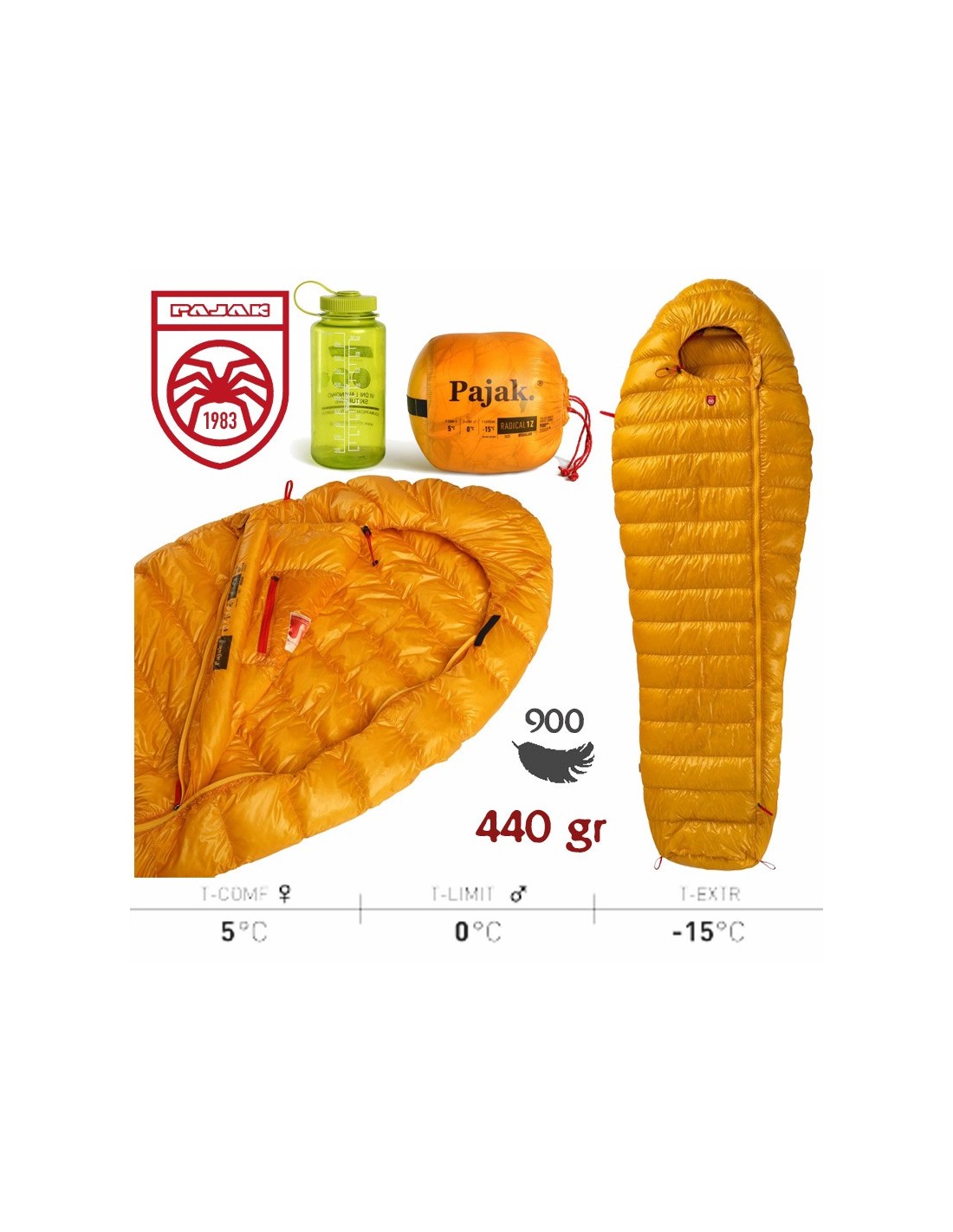 SACO DE DORMIR DE PLUMA RADICAL 1 REGULAR ULTRALIGHT (GOLD) - PAJAK