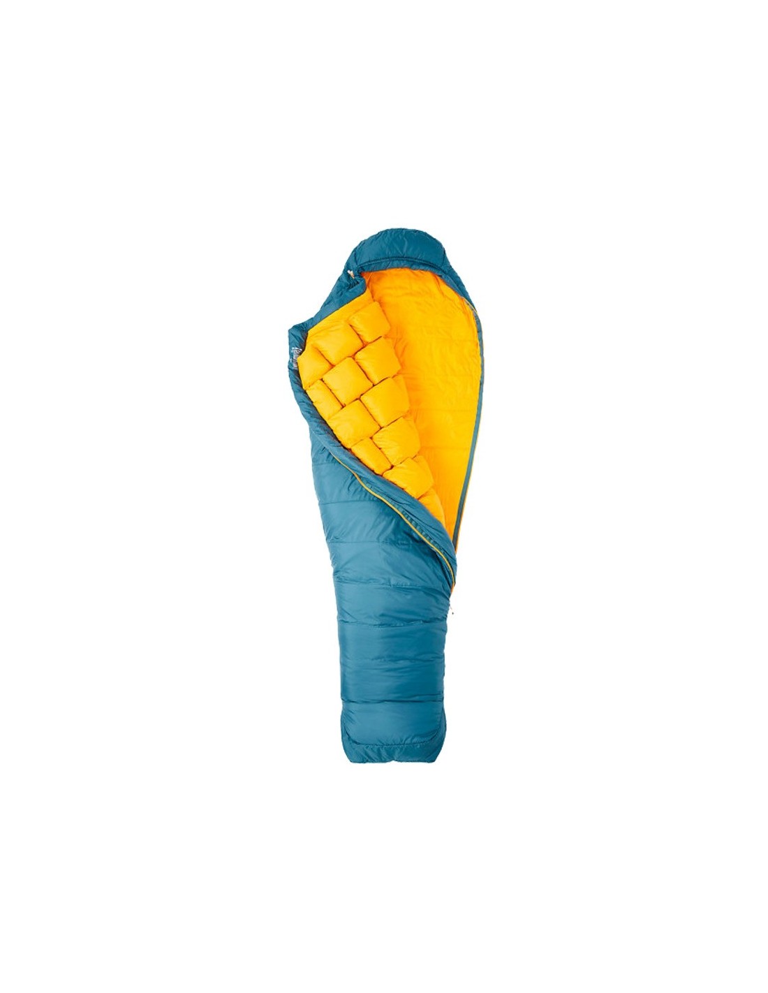 - Capa de plumón de 650 rellenos con tecnología WarmCube ™ en el pecho y el reposapiés para máxima calidez; Aislamiento sintético HL-ElixR Micro ™ en la capa exterior.