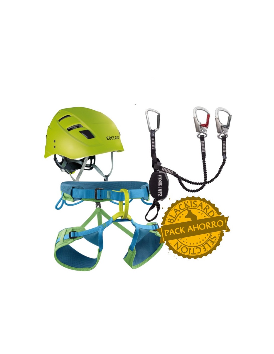 Pack ahorro de material para via ferrata compuesto por los 3 elementos siguientes: