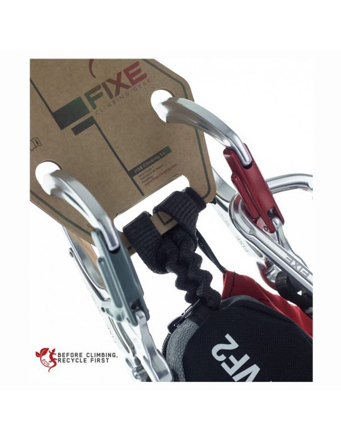 Disipador de energía para la práctica de vías ferratas. Conjunto ligero y compacto, que facilita la progresión por los pasos equipados en las vías ferratas. Las cintas elásticas evitan problemas durante la progresión, facilitando el enganche en los anclajes. Los mosquetones están fabricados en aluminio y su apertura es ergonómica. El kit del modelo VF2 incluye un práctico cabo de anclaje.
