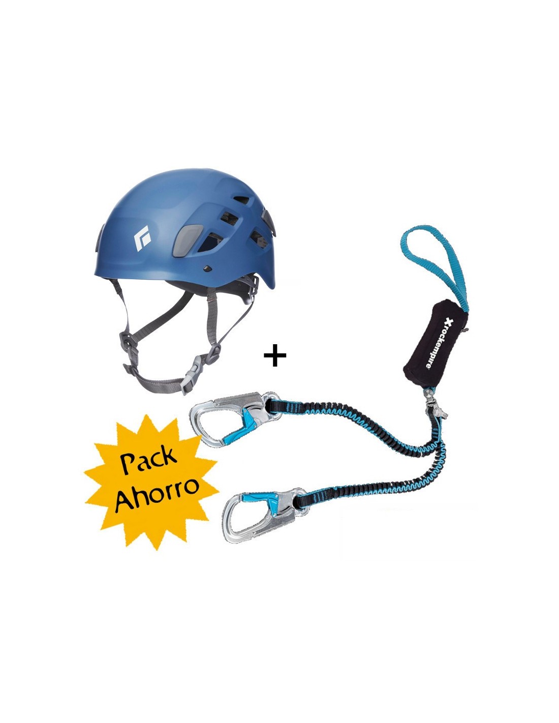 Pack ahorro de productos para via ferrata compuesto por el disipador Dynatwist de Rock Empire y el casco Half Dome de Black Diamond.