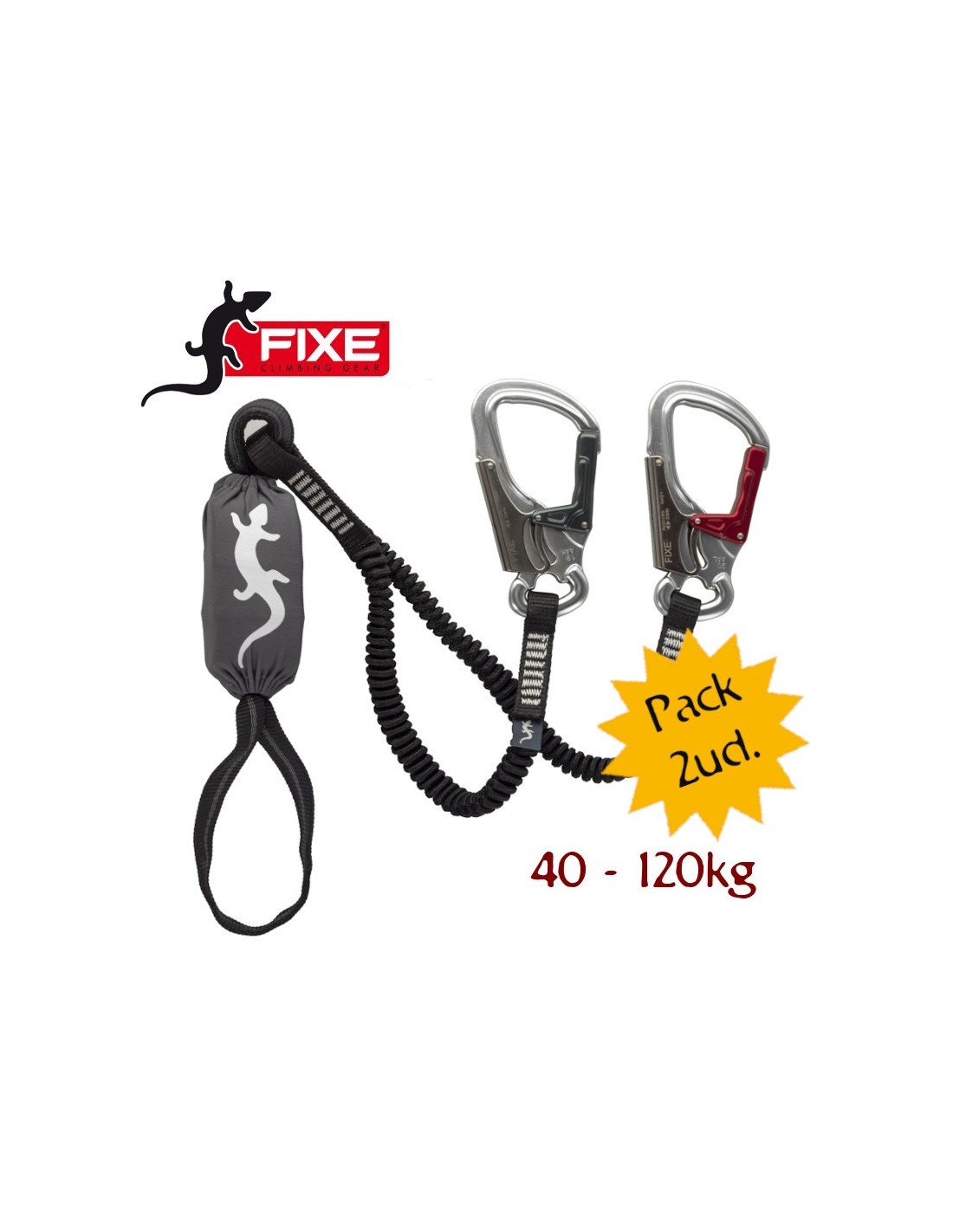Disipador para vía ferrata de a marca FIXE con doble mosquetón automático de dos movimientos. Seguro, flexible y robusto.
