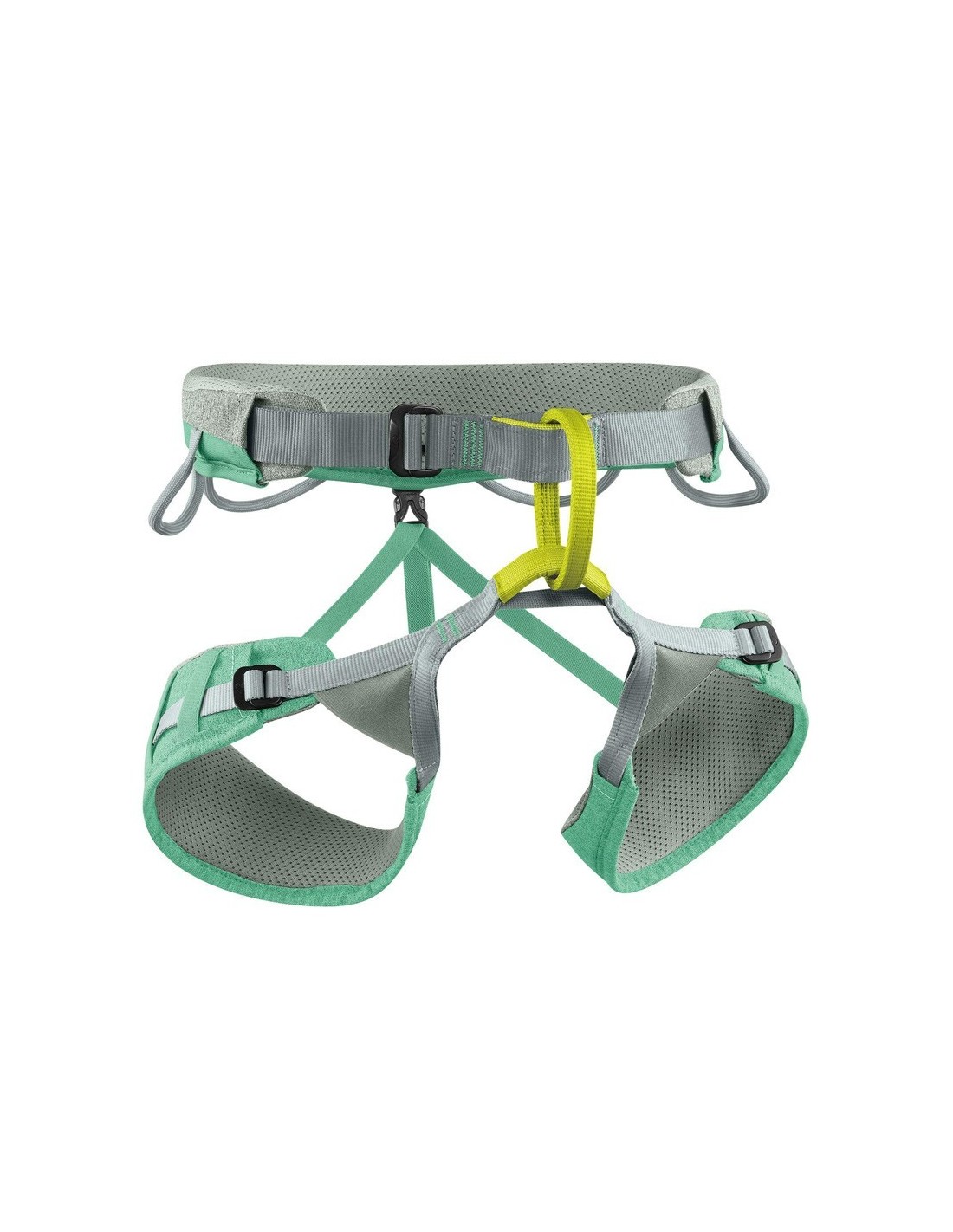 Cinturón universal especialmente adaptado a la anatomía femenina con perneras ajustables y punto de enganche centrable. Apto para todas las actividades verticales.