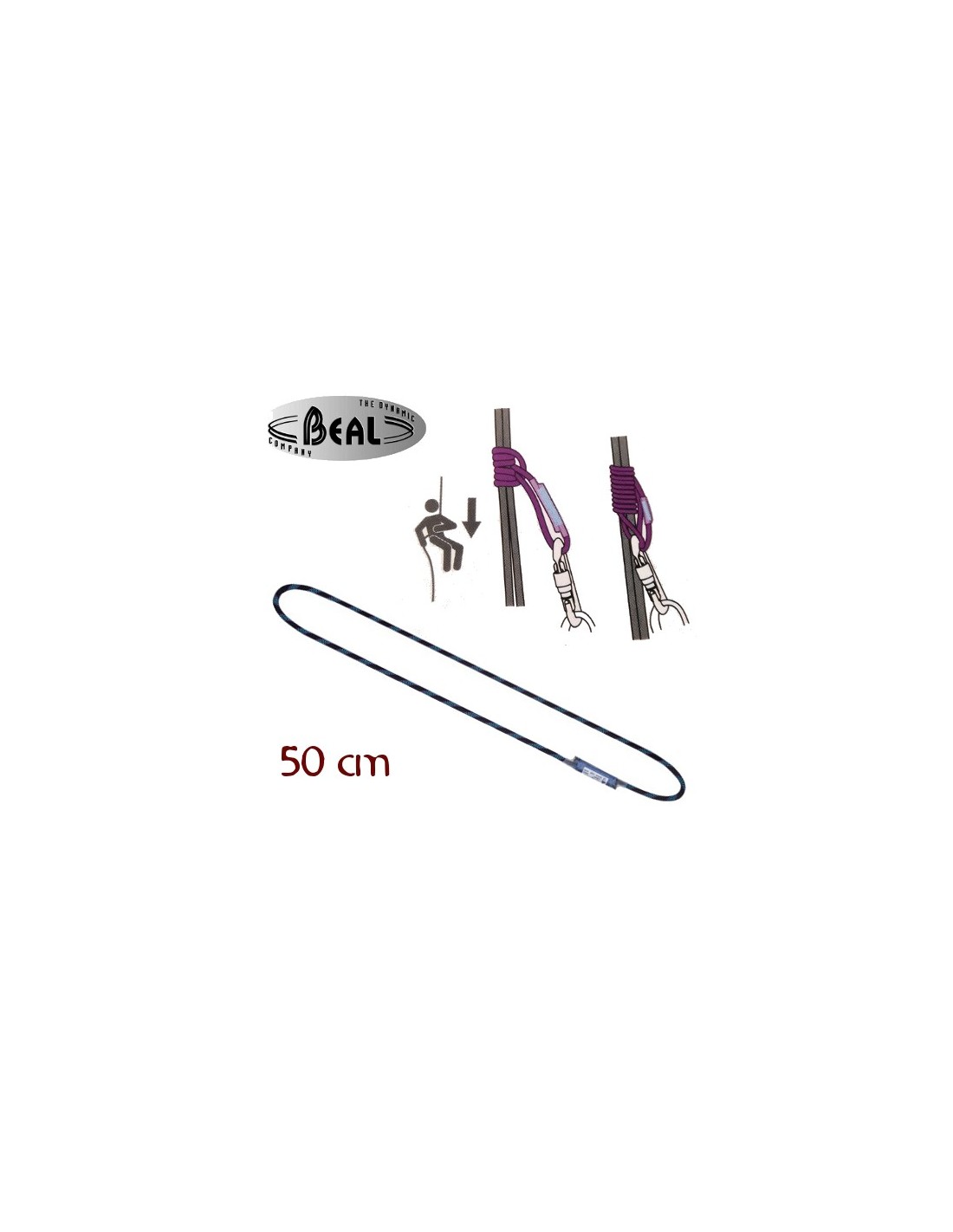 El anillo de longitud 50 cm se recomienda para usar con cuerdas de entre 7,3mm i 8,1mm en la confección del nudo Machard.